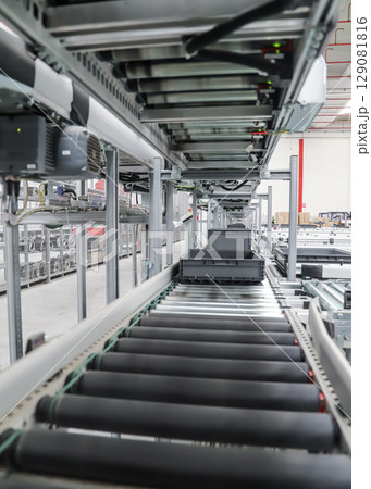 packing line in a logistics warehouse. conveyor belt in a modern production line