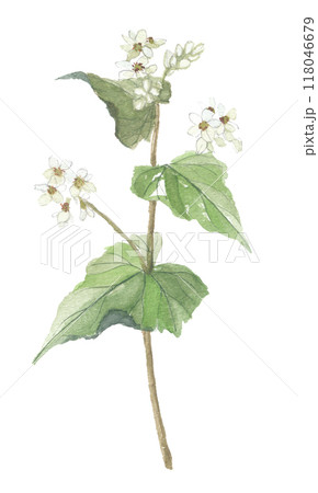 水彩で描いた そばの花と実