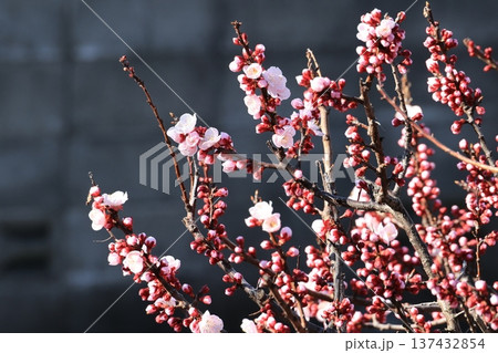 新春に咲き始めた美しい梅の花 紅梅