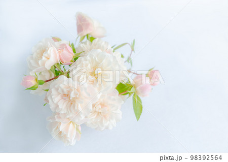 ピンクのバラ花束 背景画像 淡い 薄い コピースペース おしゃれ ミニバラ
