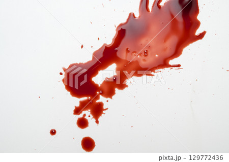 Splatters of blood drops, blood splashes, or blood spots on a white background. Concept of Halloween