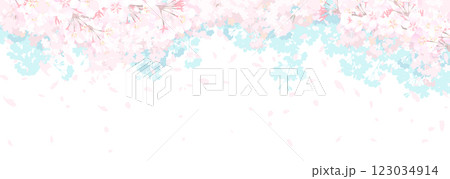 ふんわりした桜と青空の横長ベクターイラスト