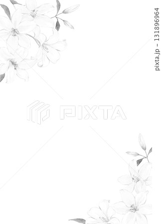 白ユリのフレーム モノクロイラスト 喪中はがき