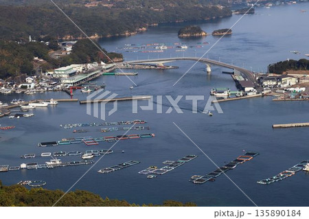 鹿児島県長島町 針尾公園から見た竹島 竹島橋 薄井漁港