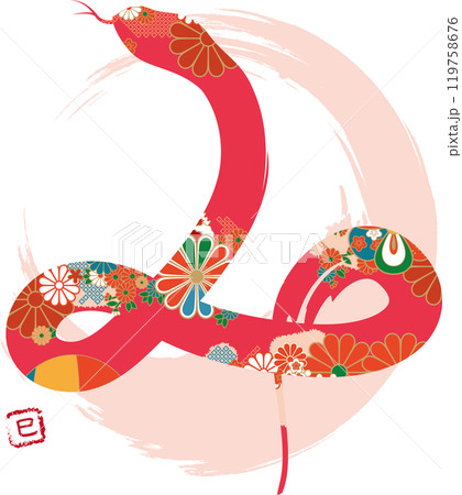 年賀状2025 年賀2025 巳年 巳 蛇 へび 墨絵 水墨画 版画 判子 手描き イラスト素材