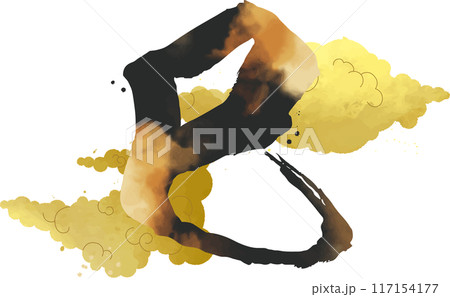 2025年毛筆の巳の文字と金雲ベクターデーター