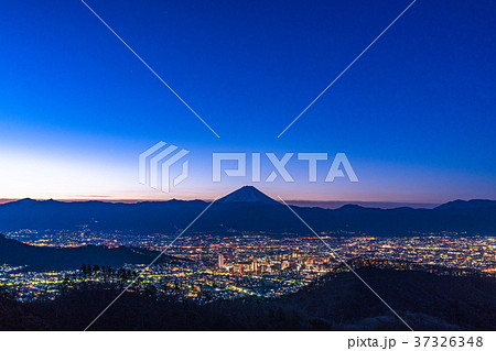 《山梨県》富士山と甲府盆地・薄明の夜景
