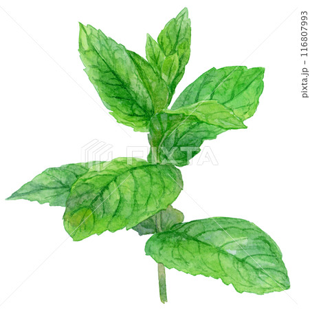 水彩タッチのミントの手描きイラスト