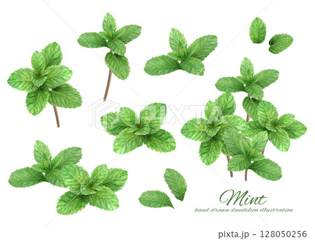 ミント(ペパーミント) 水彩イラストセット