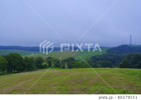 薄霧の牧草地(鹿角平)