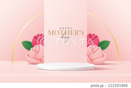 玫瑰與商品展示台,適用婦女節、母親節、情人節、紀念日、週年、生日、婚禮橫幅廣告邀請卡向量素材