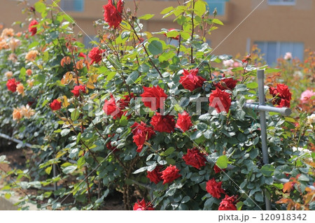 中之条ガーデンズ ローズガーデンエリアの赤いバラ
