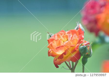 秋の美しい景色 カラフルに咲いた満開の秋バラ