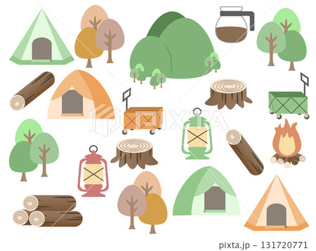 優しい色合いの優しい色合いのキャンプ用品セット