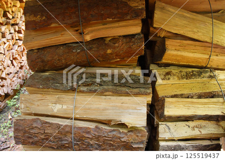 薪 ストックした薪 燃料用の木材 積み上げられた薪 イメージ素材