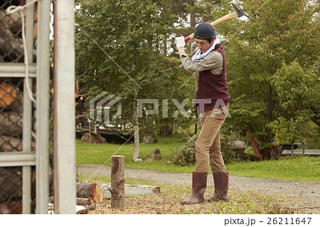 薪割り 斧 男