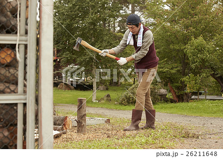 薪を割る男性