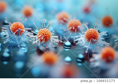 Coronavirus 2019-nCov novel coronavirus concept. Microscope virus close up. Generative AI