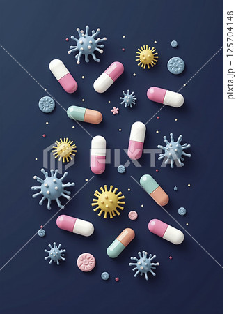 Different antiviral drugs in capsule or tablet form besides illustrative pathogens, pharmaceutical drug development against pathogens