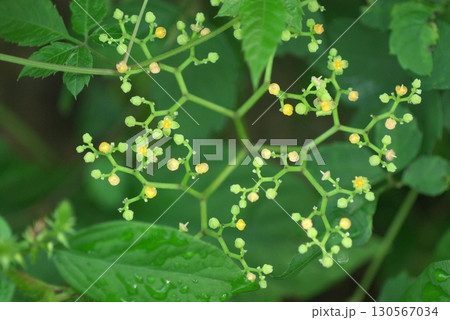 ヤブガラシの蜜につられてやってきたキアシナガバチ