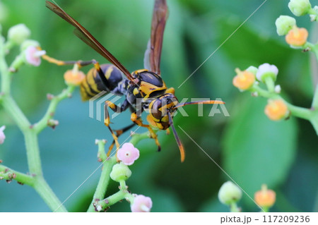 ヤブカラシの花の蜜を吸いに来たスズメバチ