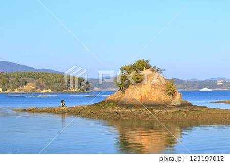 干潮時に歩いて渡れる 大芝島のモンサンミシェル