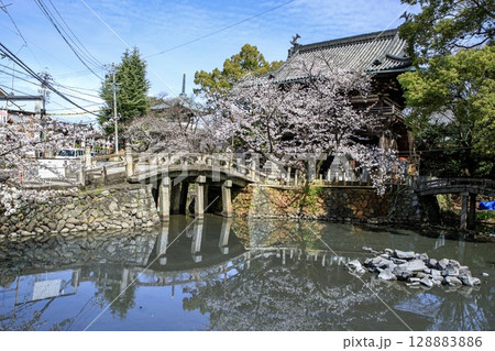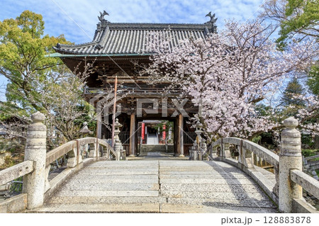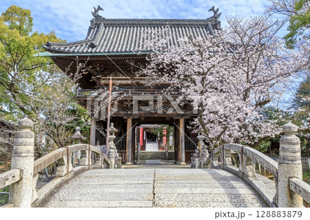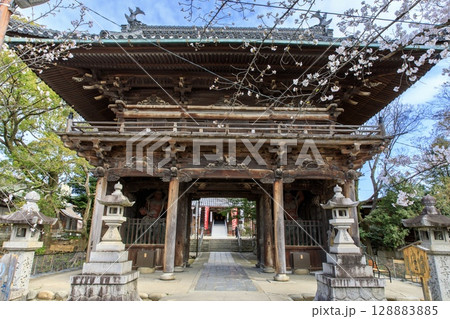 名古屋市、笠寺観音(笠覆寺)の山門と満開の桜