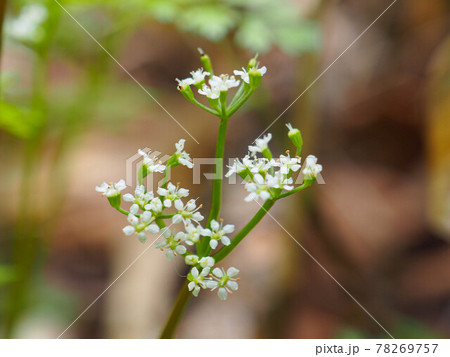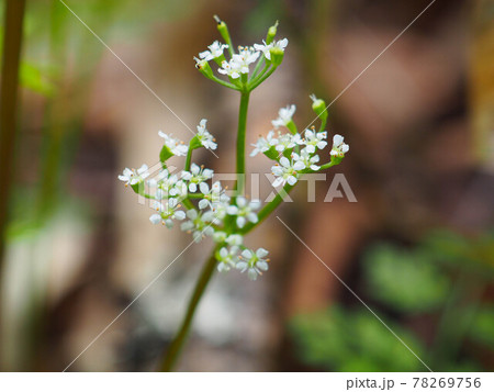 自然 植物 ヤブニンジン、春に林縁の日陰で二、三ミリほどの小さな花をまばらに咲かせます