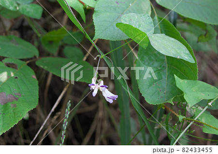 野山に自生するヤブツルアズキの花と細いさやの豆果