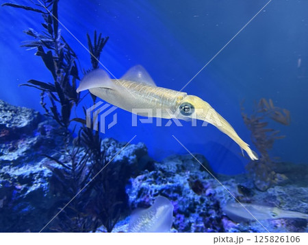 水中を泳ぐアオリイカ