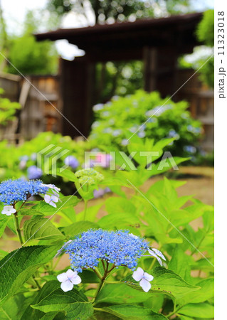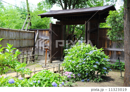 会津松平氏庭園 御薬園 門と紫陽花