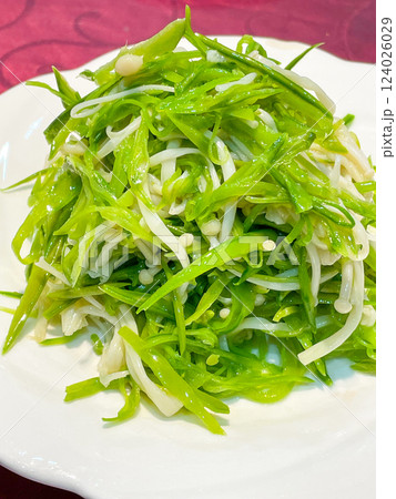 中国上海料理の前菜 凉拌双笋丝(インゲンとえのきの中華和え)