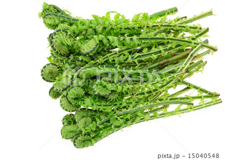 収穫したての新鮮な山菜(コゴミ・クサソテツ・フィドルヘッド)