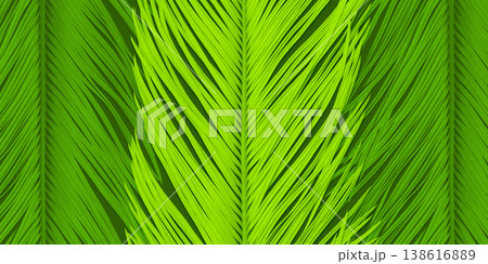 フォルムが美しい白いソテツの葉、グリーンの背景素材