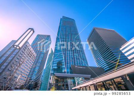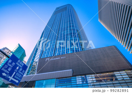 日本の東京都市景観 虎ノ門ヒルズや虎ノ門ヒルズビジネスタワーなどを望む。奥に虎ノ門ヒルズ駅