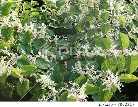 白い花をつけた虎杖(イタドリ)