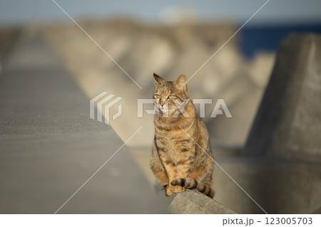 防波堤で佇む猫