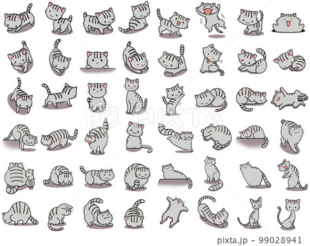 【セット】サバトラネコのかわいいイラスト/48匹