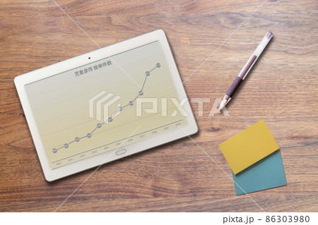 児童虐待通報件数推移グラフ(タブレット 筆記用具)