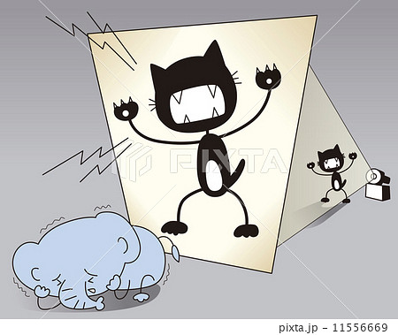 小さな猫を恐れる象