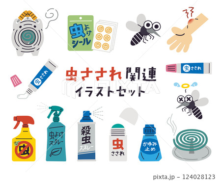 夏の虫よけ対策・虫刺され関連ベクター手書きイラストセット