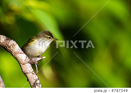 木の枝にとまってあたりの様子を伺っているセンダイムシクイ