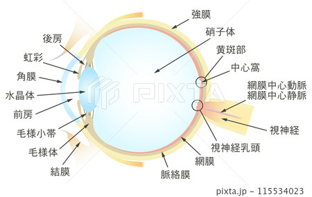 目 眼球 構造 人体 CG 図解 断面図 説明入り