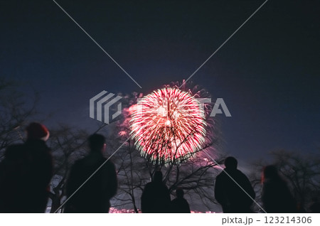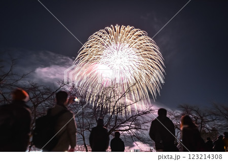 花火を見つめる人々 (十日町雪まつり 虹雪花火)