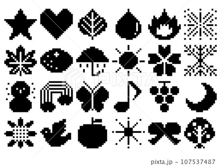 ドット絵のアイコンイラストセット(黒)