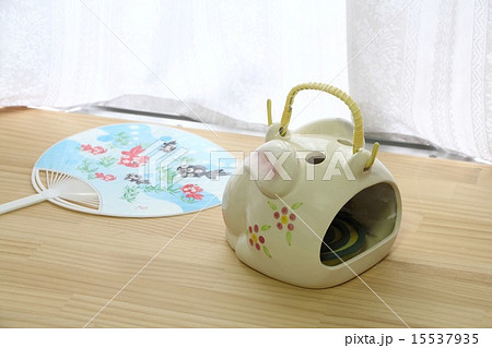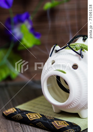 日本の夏の風物詩 蚊取り線香の煙を吐く蚊遣り豚