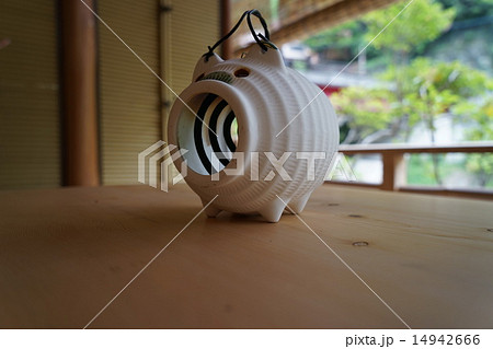 夏の風物詩 縁側の蚊遣豚で蚊取線香を焚く