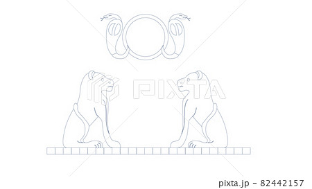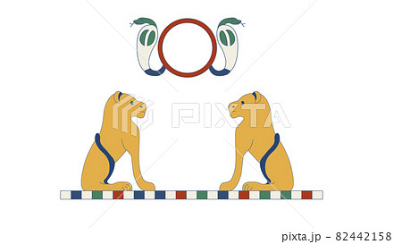 Egypt royal lions. Egypt ornamental lions and snakes composition, ornamental element of Ancient Egypt.