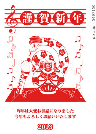 2013年巳年完成年賀状テンプレート(蛇使い謹賀新年)赤一色