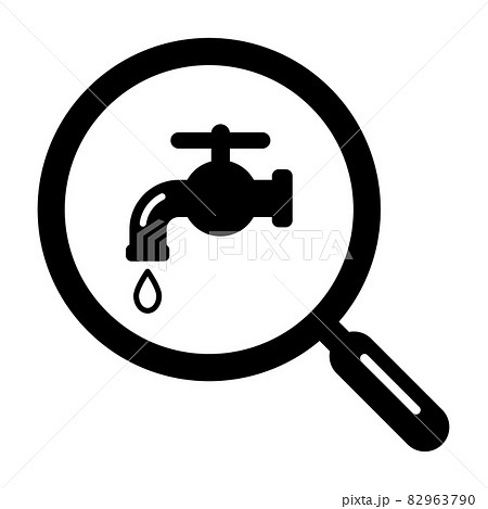 水漏れ蛇口と虫眼鏡のアイコン
